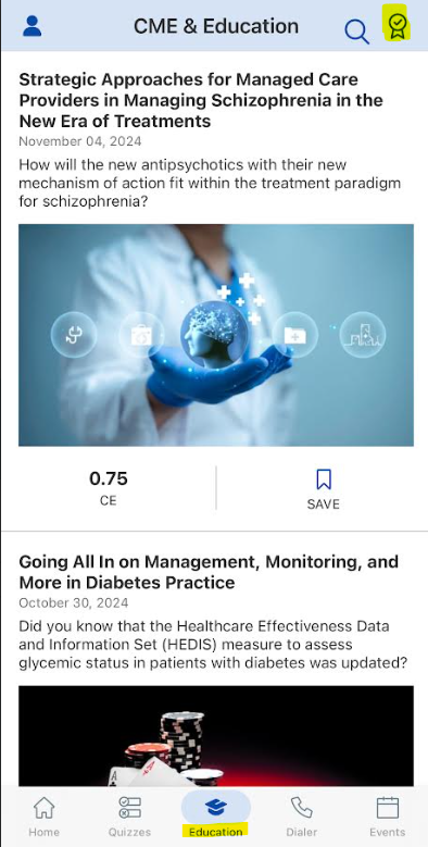 You may also access the Activity Tracker from Medscape's iOS and Android apps by selecting the menu options. Note: Printing cannot be done via the app. Please use a browser instead.
